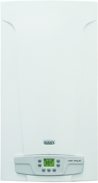 Котел Baxi MAIN FOUR 24 мощностью 24кВт - это четвертое поколение настенных газовых котлов от компании BAXI, являющееся продолжением широко известной в России серии MAIN Digit. Благодаря компактным размерам (730 х 400 х 299 мм) котел MAIN Four может быть легко установлен в любых условиях ограниченного пространства. Новая цифровая панель управления с широким жидкокристаллическим дисплеем и кнопочным управлением делает проверку работы котла легкой: ясные и простые символы позволяют показывать все неисправности системы.