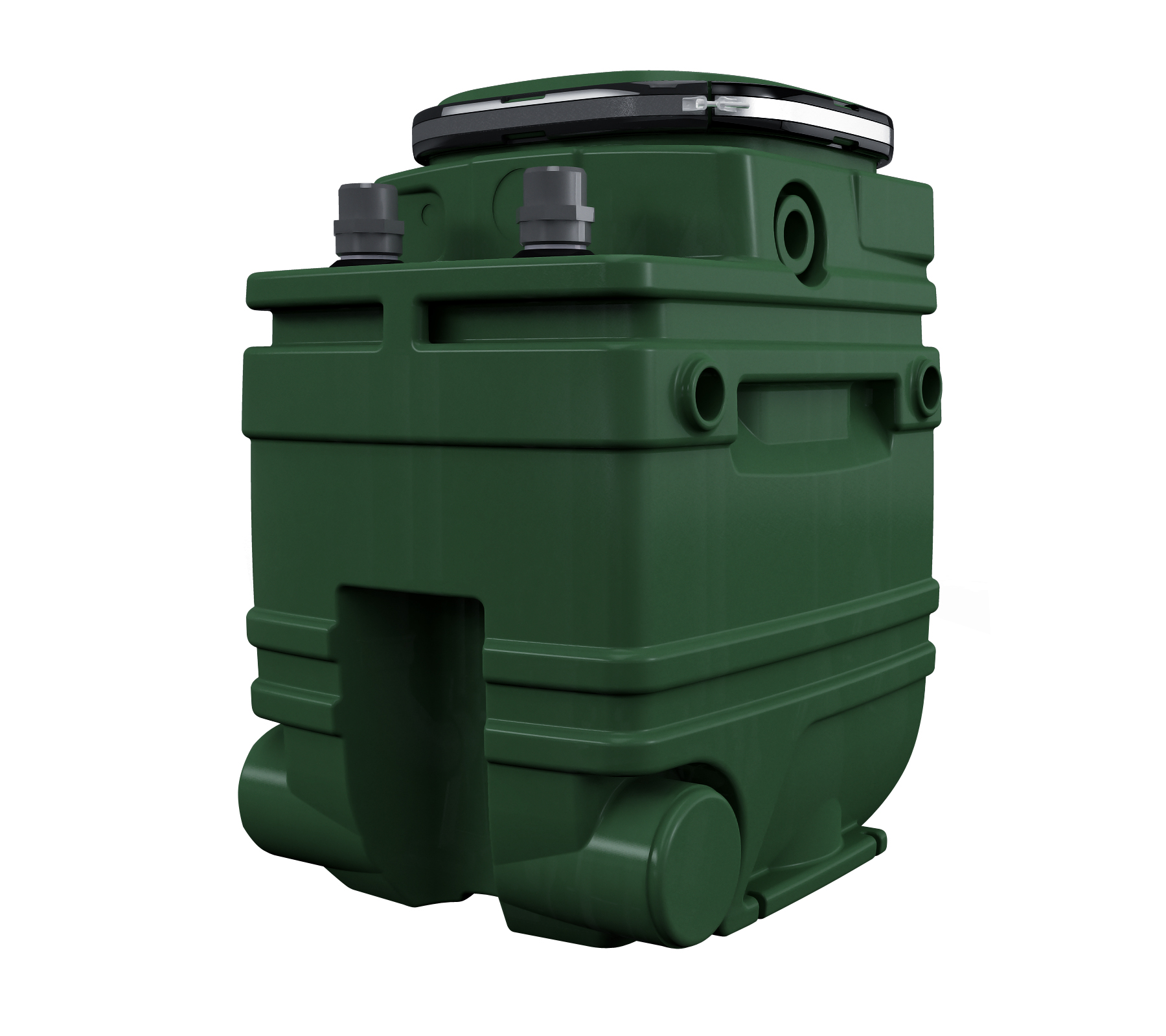 В комплект поставки входит полиэтиленовая емкость, крышка и ее уплотнение, уплотнение кабеля, два сигнальных поплавка, приемные патрубки DN 50 и DN 110, вентиляционный патрубок DN 50 и напорный патрубок 2».