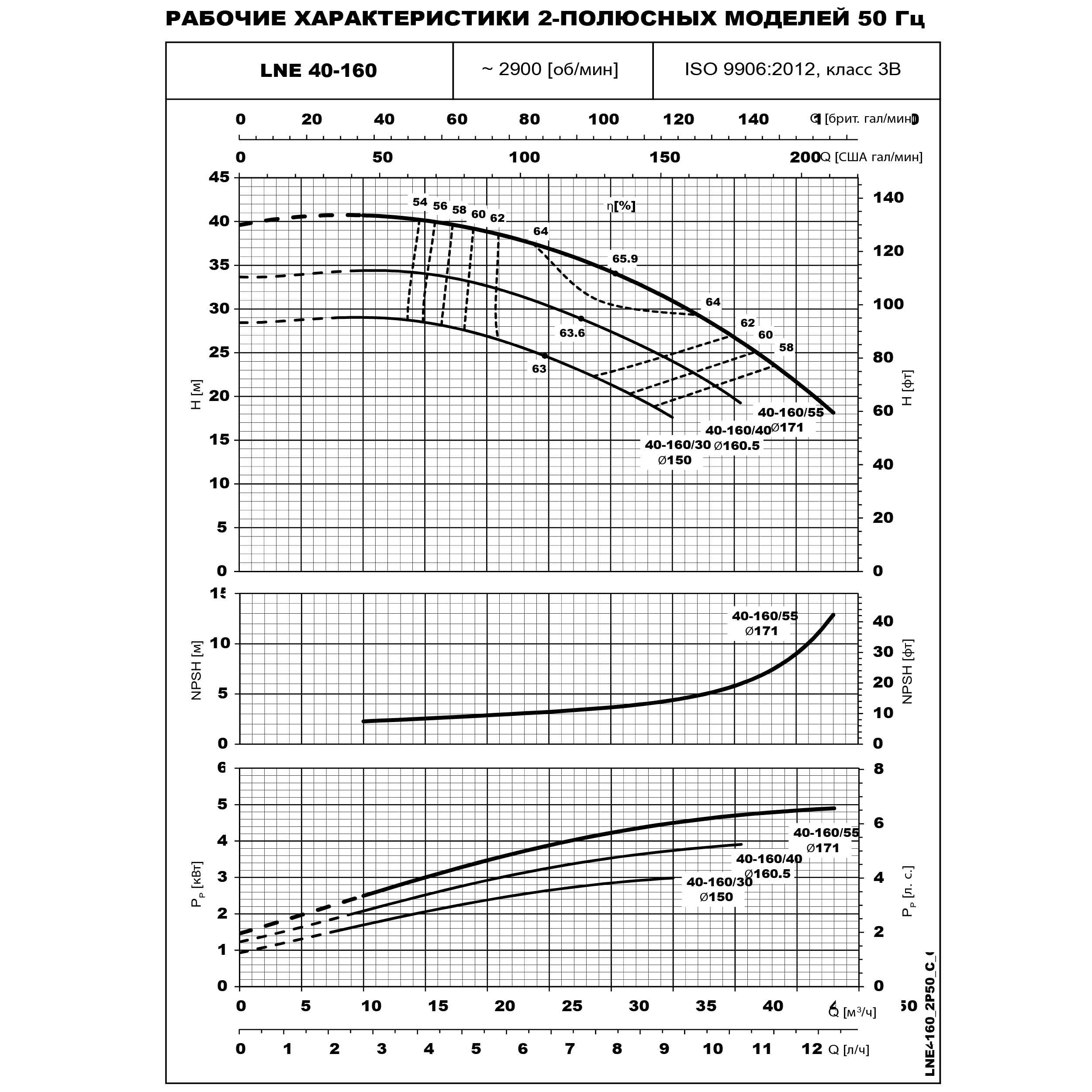 Технические характеристики Lowara LNES 40-160/55/P25V CS4